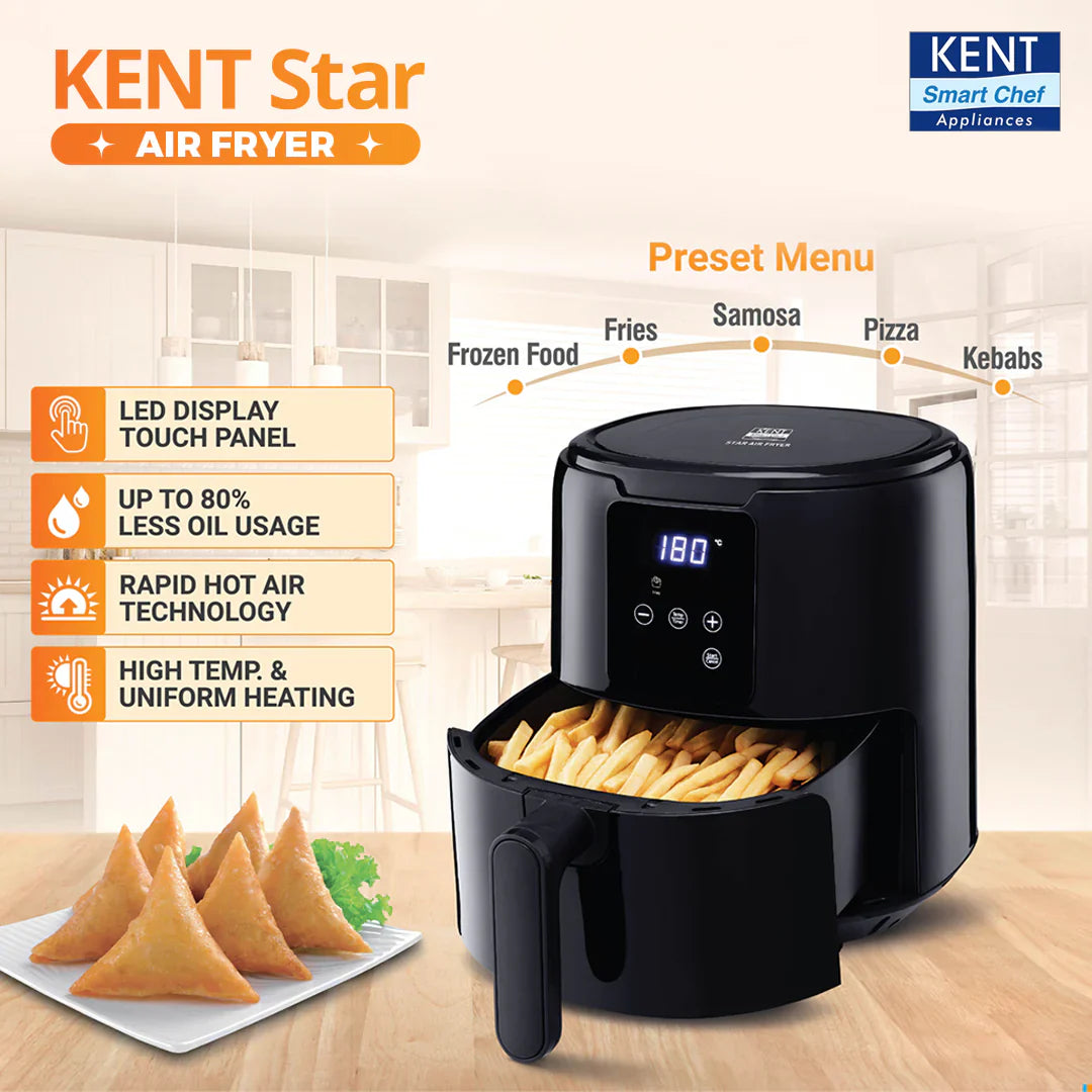 - KENT Star Air Fryer is a smart kitchen appliance to make delicious fried food with up to 80% less oil.