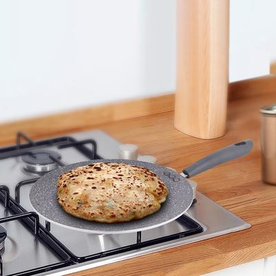 This Primestone multi tawa by Shri and Sam is built in heavy gauge aluminum that has non stick coating. The handle is soft touch handle that smoothens the grip on your hand while lifting it. This multi tawa is easy to maintain and takes less space in your kitchen. This product has an induction bottom which means that it is compatible to all heating sources like gas, electric, induction etc.