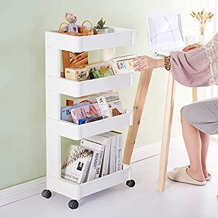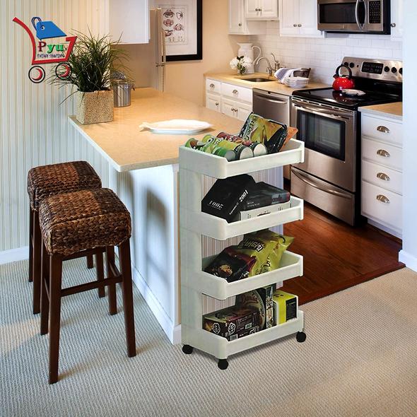 - Make use of every narrow strip of space at house with this 4-tier multipurpose wheel rack. The 4 layers design rack helps to store things according to preferences. In fact you can use lesser than 4 tiers if you want.