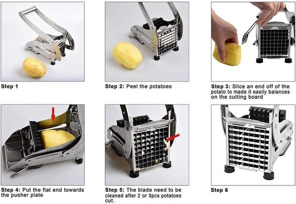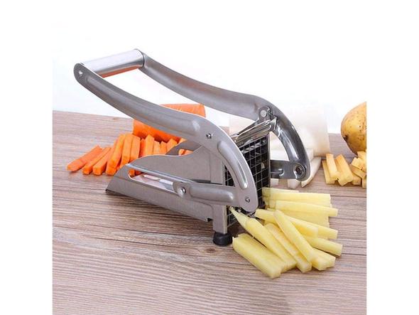 - This French Fries Machine Cutter Potato Slicer is made of premium grade Stainless steel of high strength, not like other flimsy ones that are easily broken. It is heavy duty enough and won’t break easily when you slice the potatoes to make fresh fries, fruits.