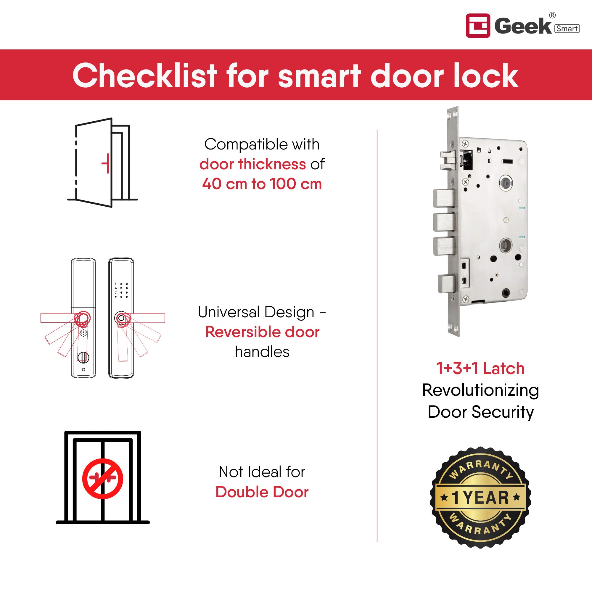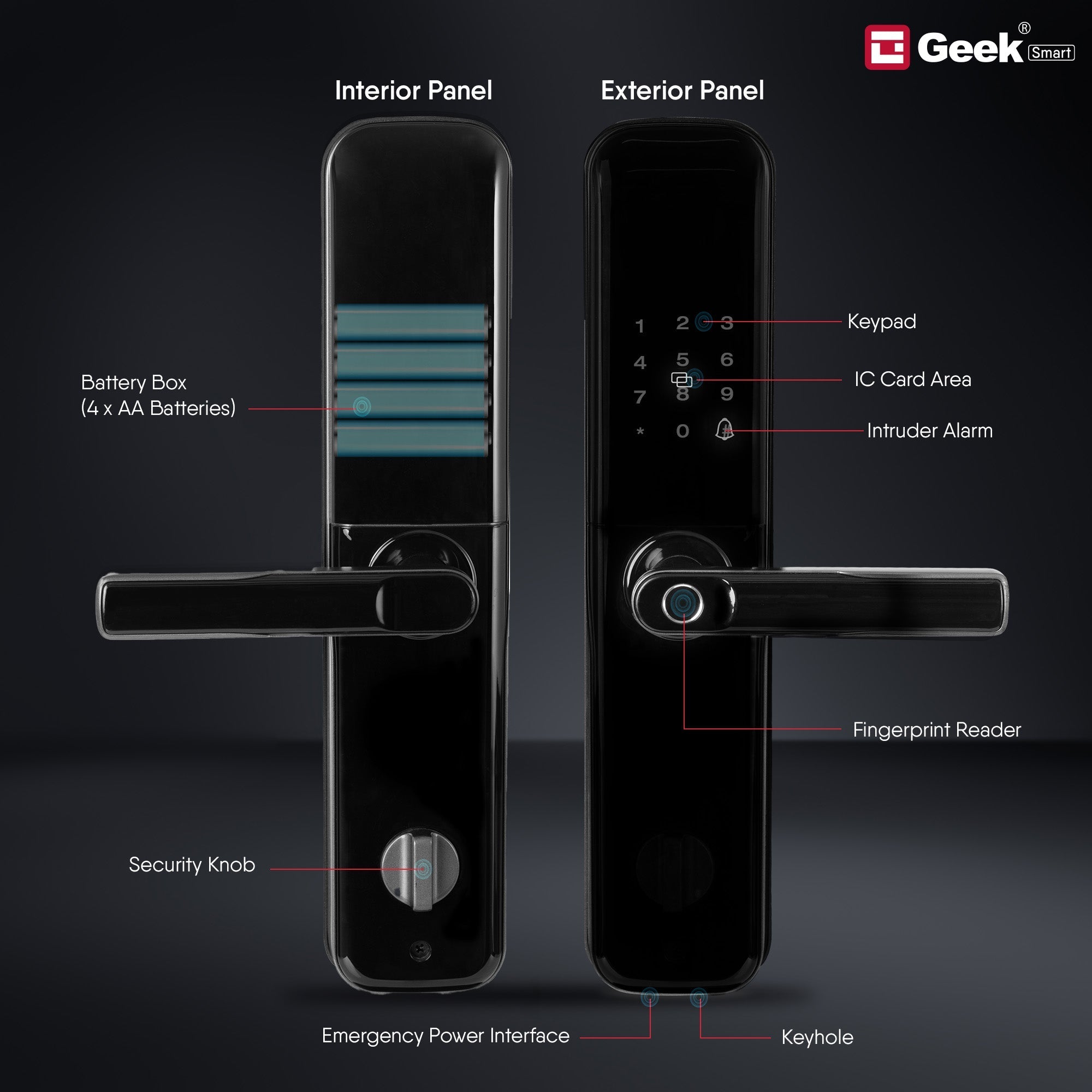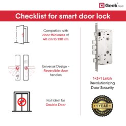 MECHANICAL KEY: The Geek smart door lock is also supported with mechanical keys in case of any emergency or battery shortages for unlocking your smart door lock.