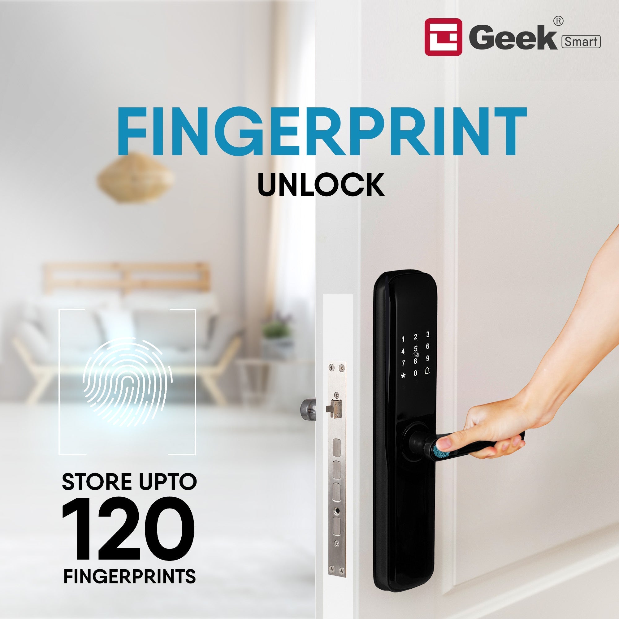 ADVANCED FINGERPRINT TECHNOLOGY: No more hassle of carrying and remembering the physical Keys. Geek Smart X403 will be the perfect fingerprint door lock to get keyless entry. You can store up to 120 fingerprints and is the most convenient way to unlock with just one-touch operation.