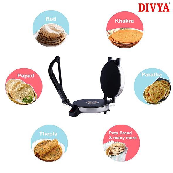 - Quality: Automatic DIVYA Roti/Khakhra/Paratha Maker has the best standard of Stainless Steel along with Teflon American Heritage NonStick Coating on the Tawa. It gives you the best performance with it 1000 Watts capacity