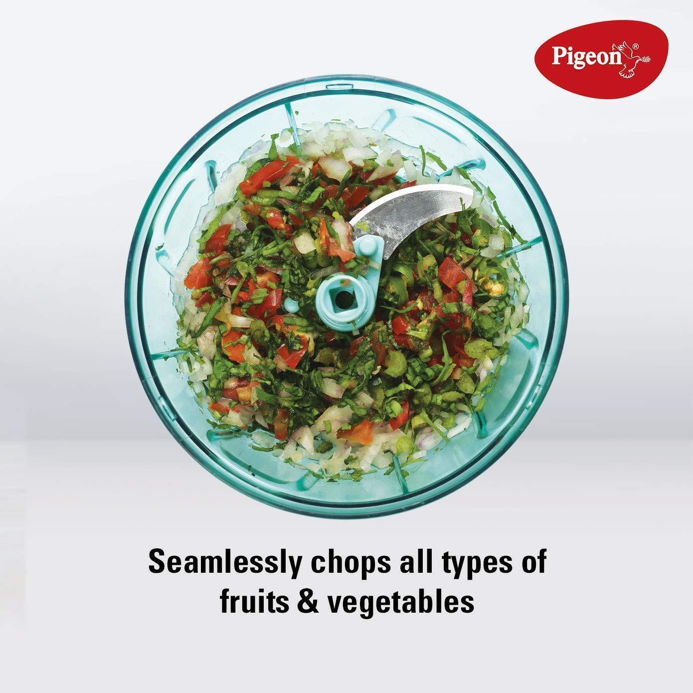 - Sturdy 3-blade design made from Stainless Steel, As this chopper by Pigeon can be opened and detached easily, cleaning is an easy task using lukewarm water, mild detergent and a soft cloth